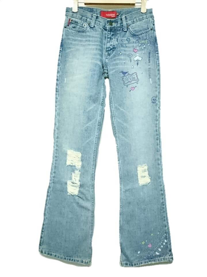 - 新品タグ付き希少!爆安!HOLLISTER/ホリスター/ヴィンテージ加工ポップアートプリント/ベルボトム/裾フレア/デニムパンツ 3 ライトブルー