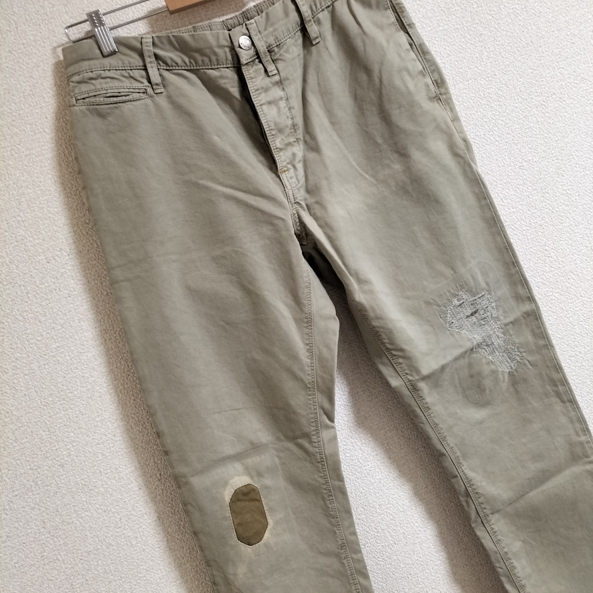 > ★ヌーディージーンズ チノパン ダメージ加工 コットンパンツ カーキ ベージュ メンズ W31 KHAKI REGULAR NUDIE JEANS ブランド古着 USED