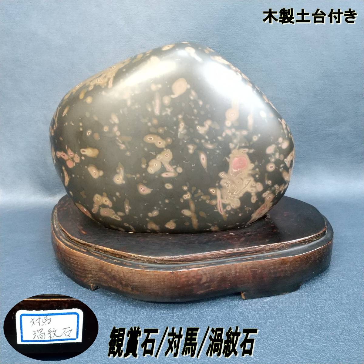 木製土台付き/観賞石/対馬/渦紋石の出品になります。
