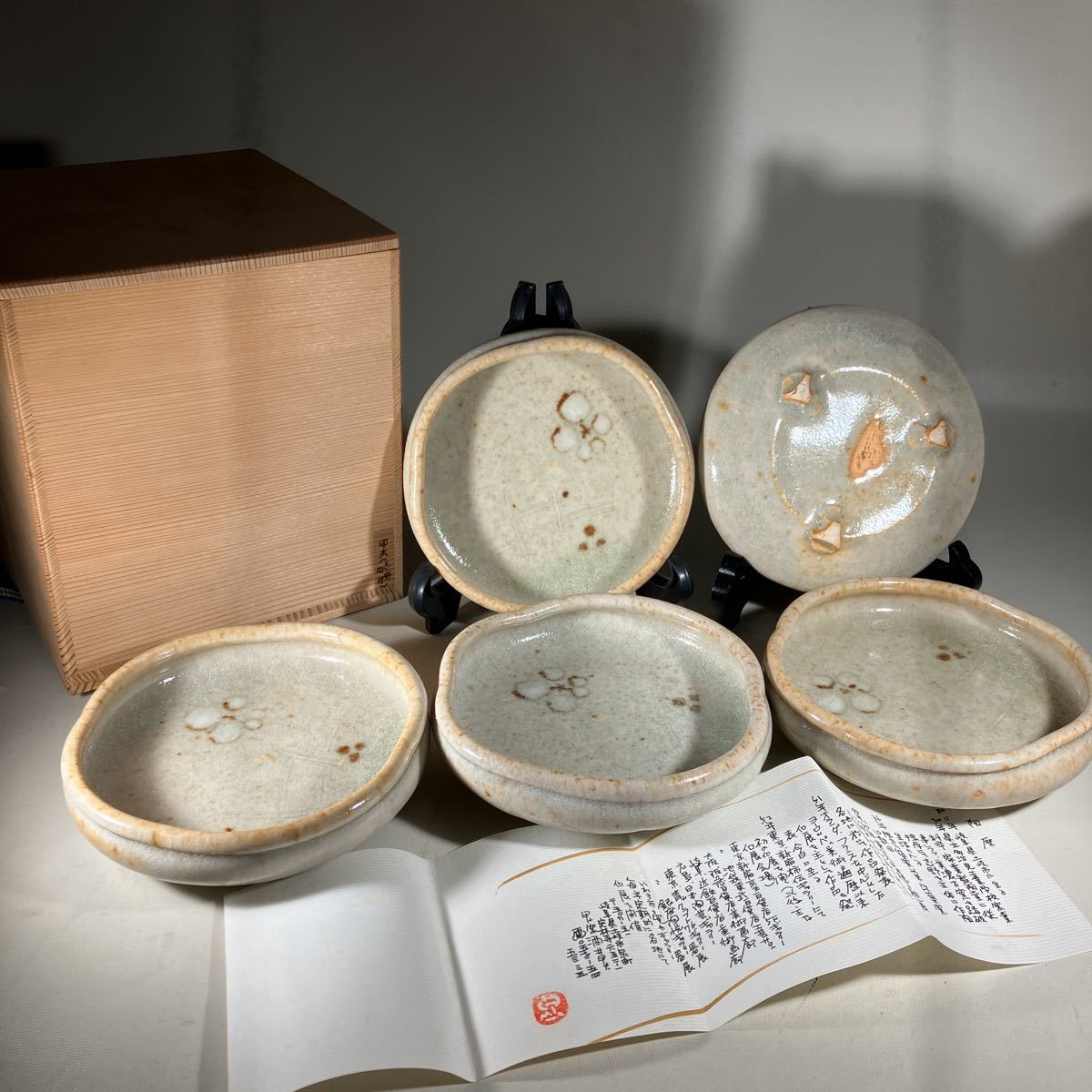 - 酒井甲夫造 萌黄志野 向付 5客 共箱 888