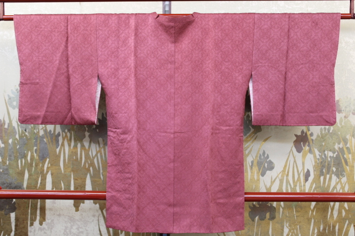- きもの今昔5894 道行コートコレクション 正絹纐纈織(ふくれ織)で柄が立体的 あずき色 身丈85cm