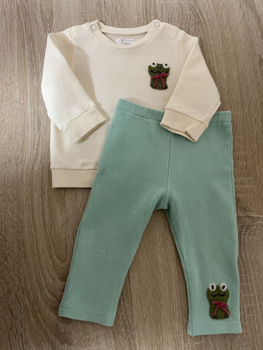 > HAKKABABY 上下セット カエル トップスS 70cm ボトムスM 80cm セットアップ スウェット トレーナー レギンス 長ズボン ハッカベビー
