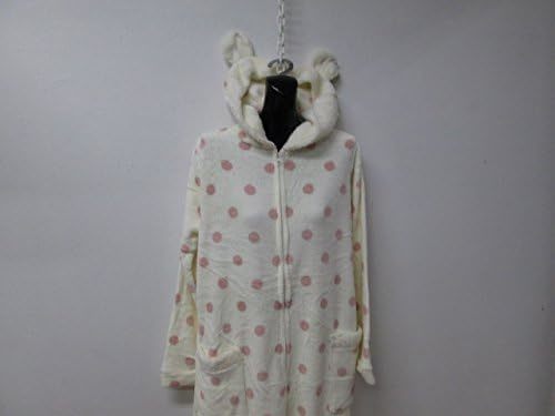 - 新品●大人 レディース着ぐるみ 耳付き パジャマ 部屋着 オールインワン つなぎ アイボリー あったかフリース