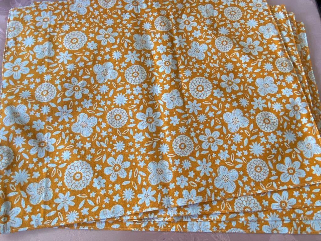- 裏付ランチョンマット ハンドメイド 35x45 4枚組 木 花柄 カラシ色