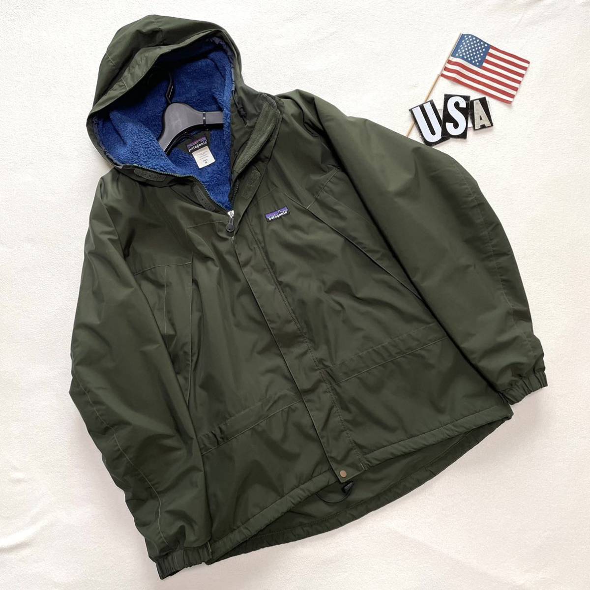 - 【廃盤・美品・希少カラー】00年 Patagonia 黒タグ INFURNO JACKET グリーン×ブルー M ビンテージ パタゴニア インファーノジャケット
