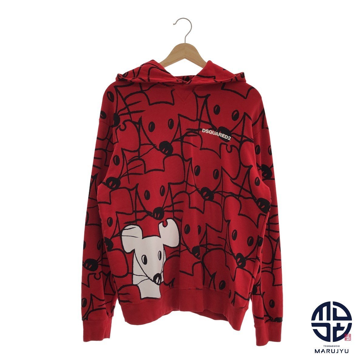 - Dsquared2 ディースクエアード DQ0815 ネズミ ネズ耳 イラスト パーカー 赤 キッズ 16Y 子供服 アパレル