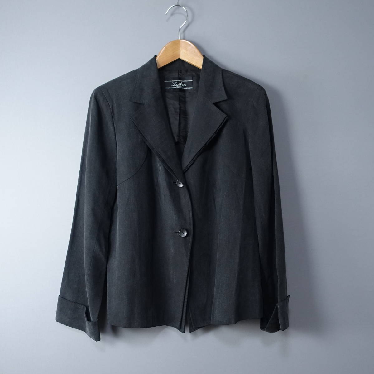 > ☆美品☆eilian/レリアン/11/日本製/リネン混ジャケット/ブラック/黒/レディース