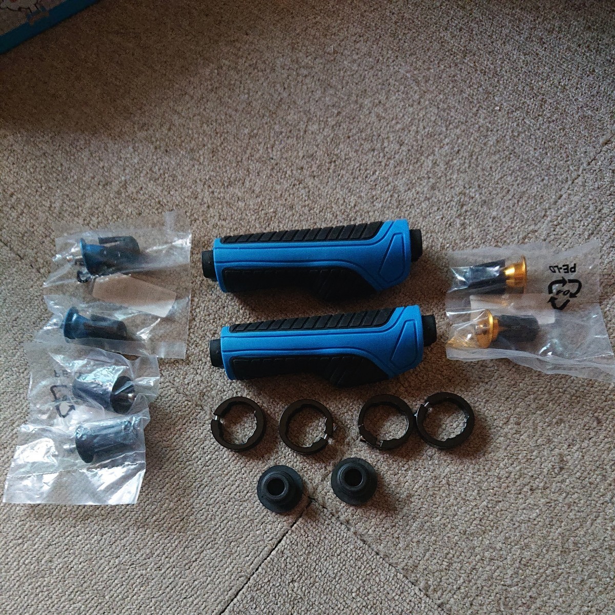 - 自転車用グリップ ブルー×ブラック 左右セット 取り付け金具付き バーエンドキャップ付き ブルー ゴールド ブラック ロードサイクル