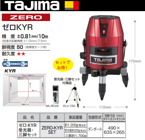 - タジマ レーザー墨出し器 ZERO-KYRSET 正規登録販売店 メーカー直送品 送料無料