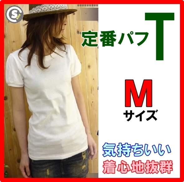 - 新品 やわらか素材 パフスリーブ 半袖 Tシャツ 【M】ホワイト 1205 白