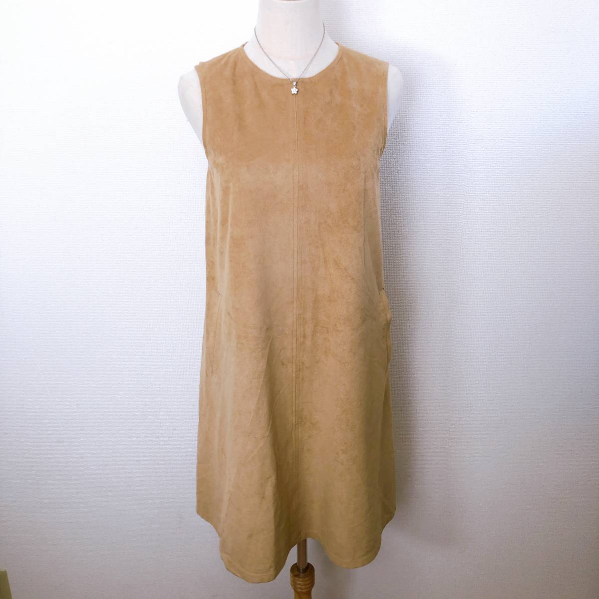 - WS0312 美品 UNIQLO ユニクロ レディース ミニワンピース かわいい M ベージュ 無地 ポリエステル キュート スウェードタッチノースリーブ