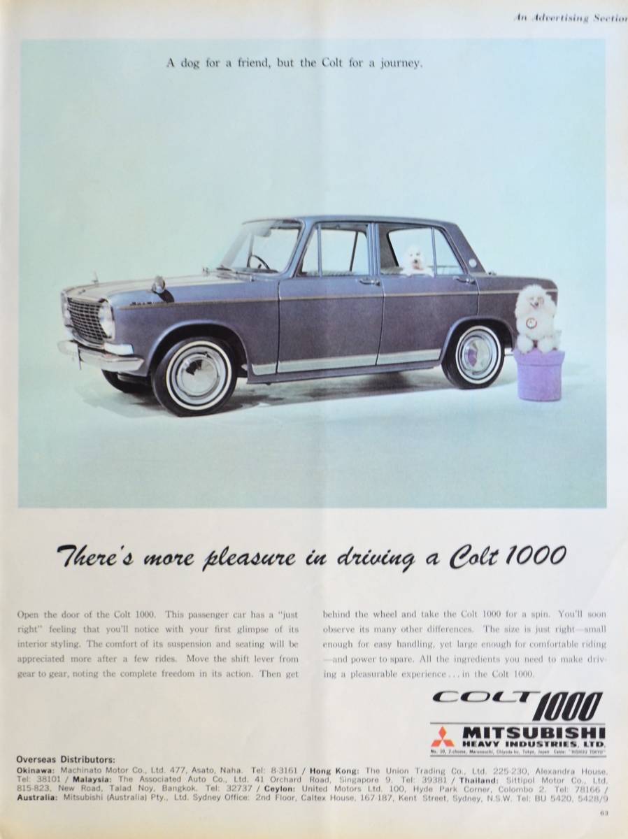 - 稀少!1965年三菱コルト広告/Mitsubishi Colt 1000/三菱自動車/昭和レトロ/旧車/プードル 犬/E