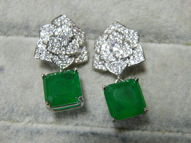 - 94006.エメラルド風 グリン カラーストン ピアス
