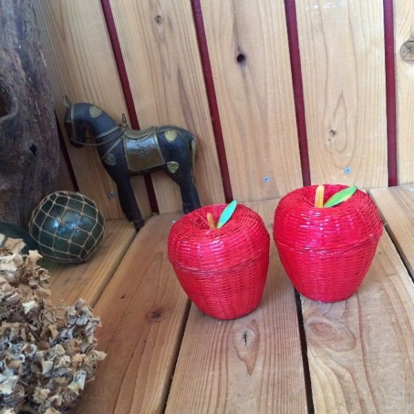 - ≫ヴィンテージ デッドストック未使用*古いりんご型のバスケット2個*かご籠カゴ収納*アップル小物入れリンゴ林檎*ビンテージ*アンティーク