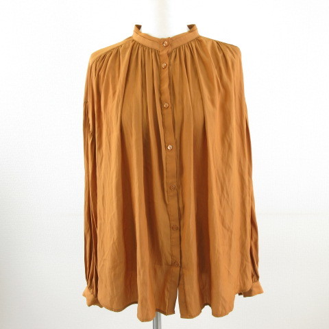 - アメリカンホリック AMERICAN HOLIC バンドカラーシャツ ブラウス ビッグシルエット 長袖 茶 M *A787 レディース