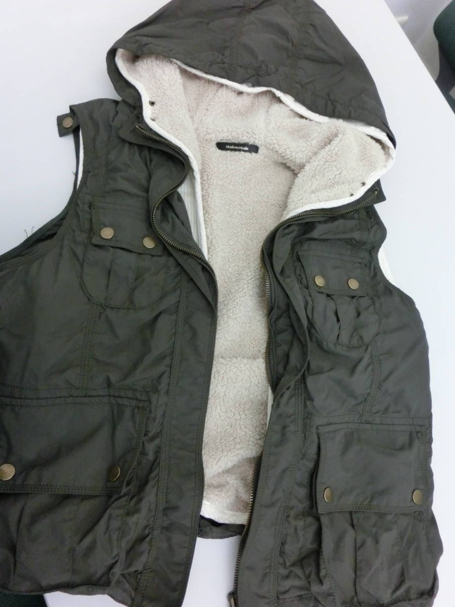 - ☆USED◆MODENMODE:レディース ボアライナー付きフードベスト◆カーキ・モスグリーン