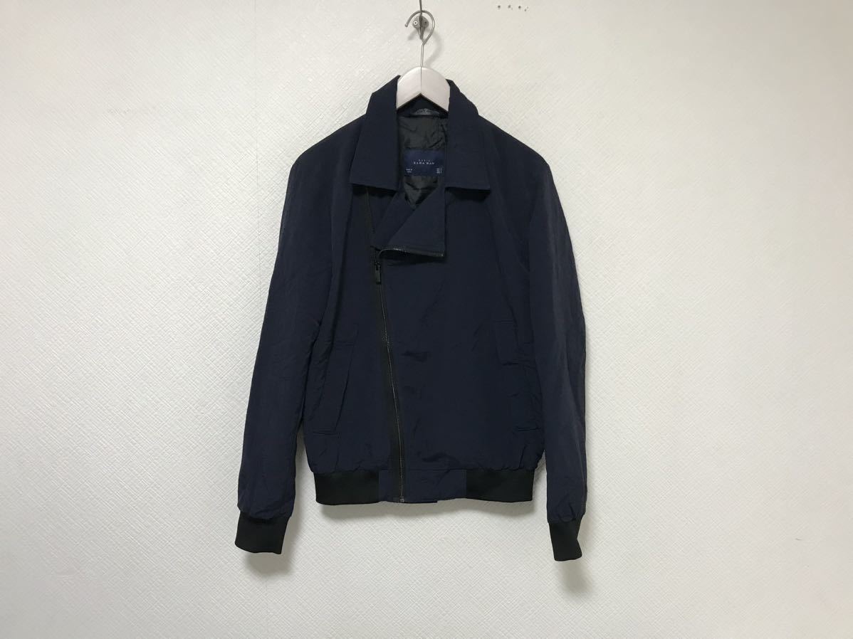 - 本物ザラマンZARAMANナイロンライダースジャケットメンズサーフミリタリーワークビジネススーツバイカーS紺ネイビー