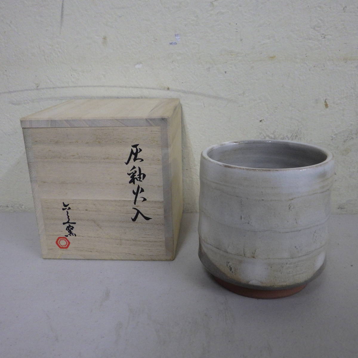- 清水 六兵衛窯 キヨロク 灰釉火入 茶道具 サイズ:高さ約8.5cm直径8.0cm程度