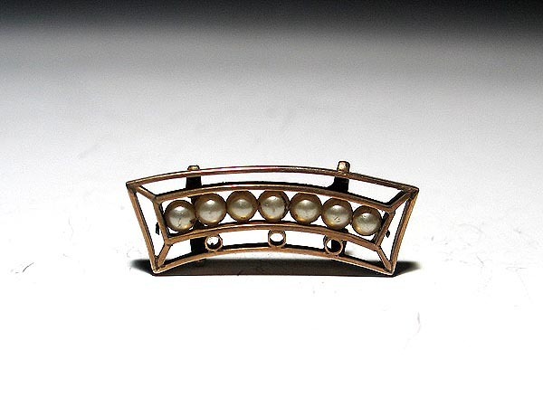 - 【桃】アンティーク帯留め:扇面形七連小真珠