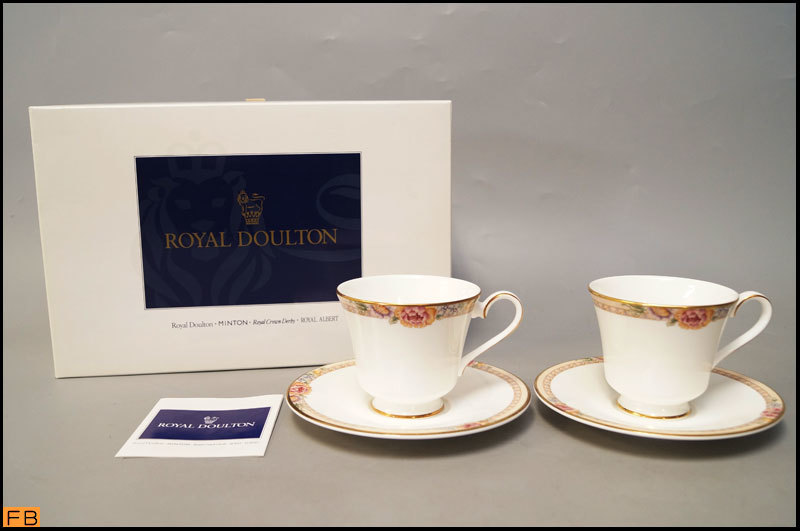 > 1334-ロイヤルドルトン◆DARJEELING ダージリン カップ&ソーサー ペア 2客 金彩 箱付 ROYAL DOULTON
