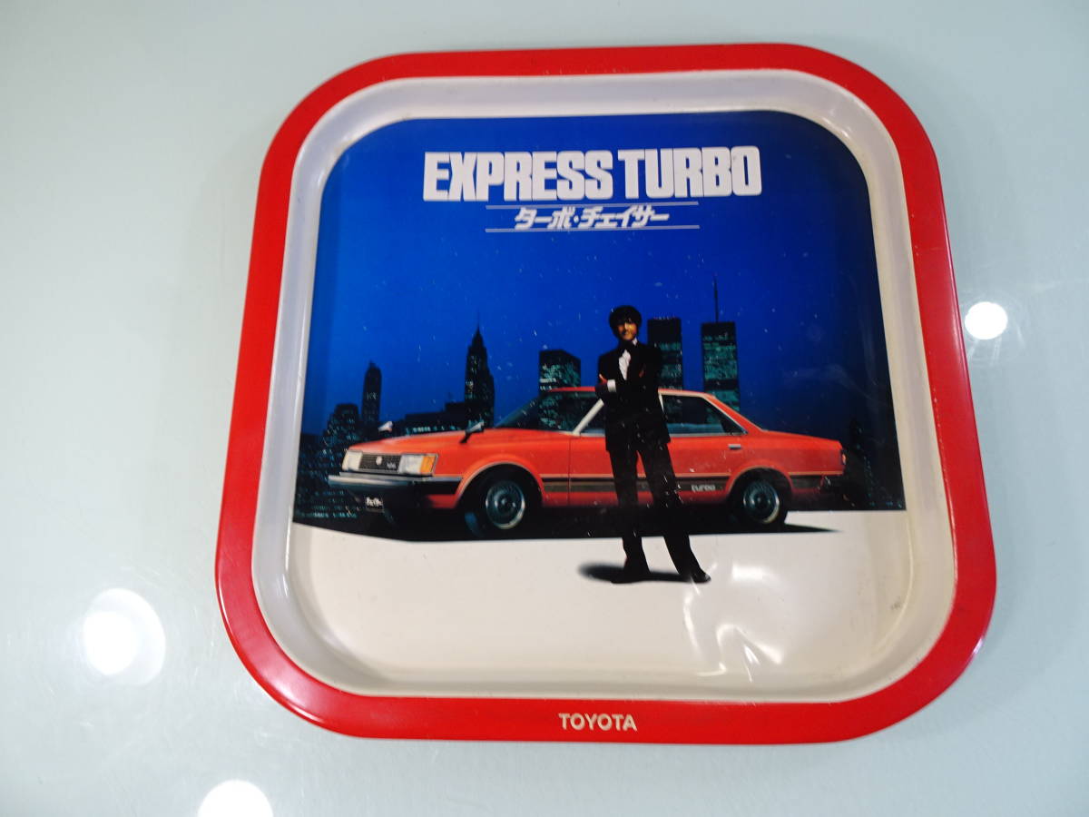 - TOYOTA ターボ・チェイサー/EXPRESS TURBO 草刈正雄 デザイン スチール缶 トレー 凹みあり 昭和レトロアンティーク