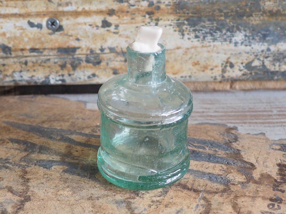 - 【フランス蚤の市ビードロ蓋つきガラス瓶C】香水瓶パフュームボトル気泡一輪挿し古道具アンティークインテリアインダストリアル骨董