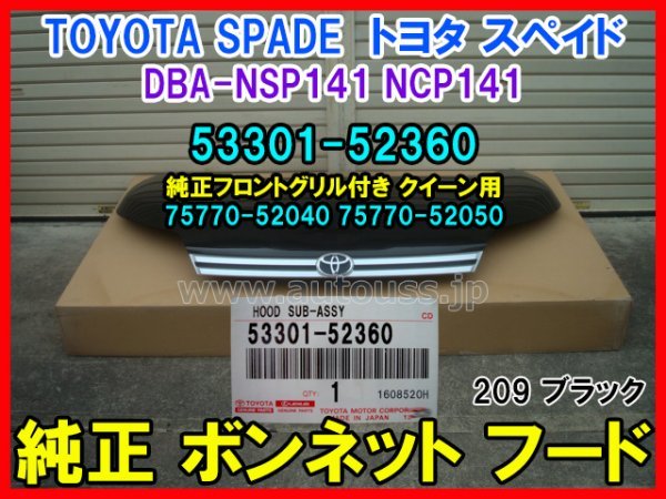 > TOYOTA SPADE トヨタ スペイド DBA-NSP141 NCP141 純正 ボンネット フード 53301-52360 グリル付き 75770-52040 75770-52050 色 209黒 即決