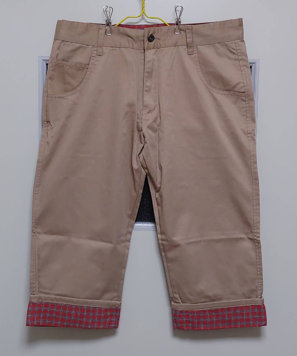 > 2018 完売品 BOTTOMS『Roll up cotton cropped pants』ベージュ×チェック 2WAY L・ウエスト約84cm※未試着品/未使用品/商品タグ付き