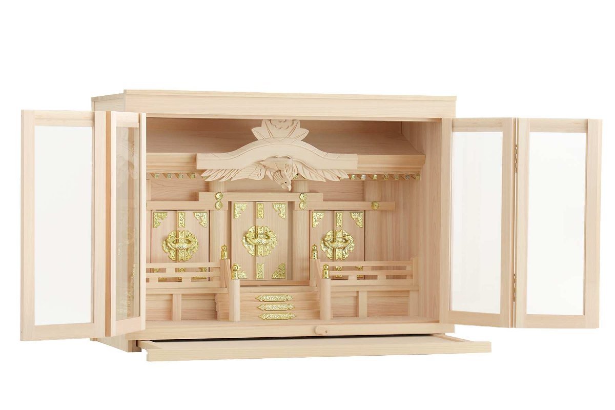 - 神棚 箱宮 三社 20号 大型 拝殿破風 東濃ひのき