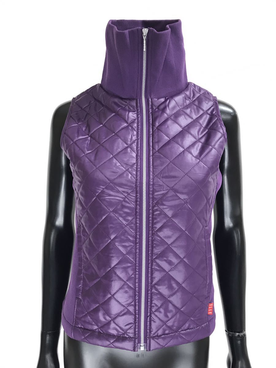 - 【USED】ELLE エル ポリエステル フルジップ ハイネック 中綿 ベスト パープル 紫 レディース 9 ゴルフウェア