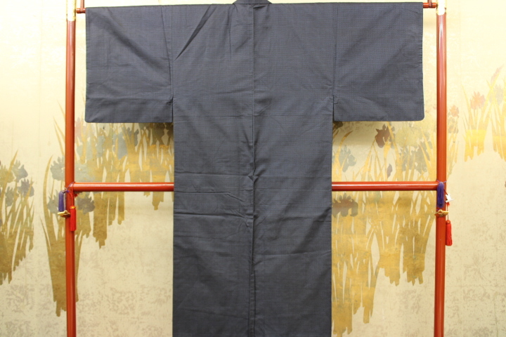 - きもの今昔6088 本場大島紬 アンサンブル藍色100亀甲絣 きもの裏正絹 羽織裏正絹羽二重額裏 身丈129cm