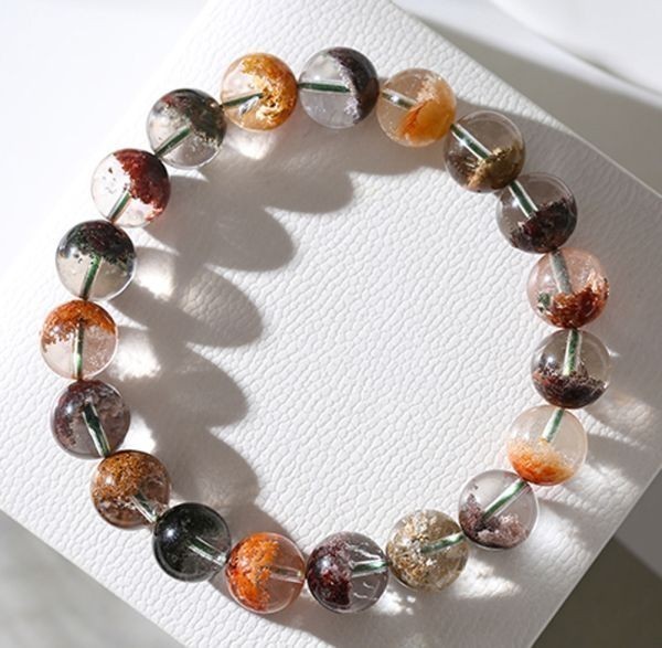 - [EasternStar] 海外発送 ミックス ファントムクォーツ コルヌコピア 幽霊水晶 特選品 大玉 玉サイズ14mm 腕回り約17cm