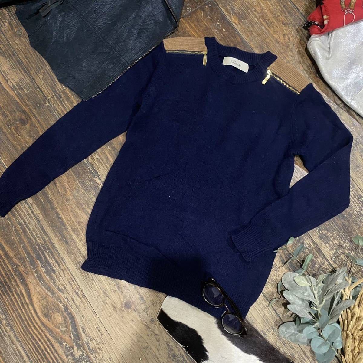- Pensee パンセ (バビロン) size:38 NAVY×CAMEL *バイカラーzipデザインニット* トップス/ニット/プルオーバー/セーター
