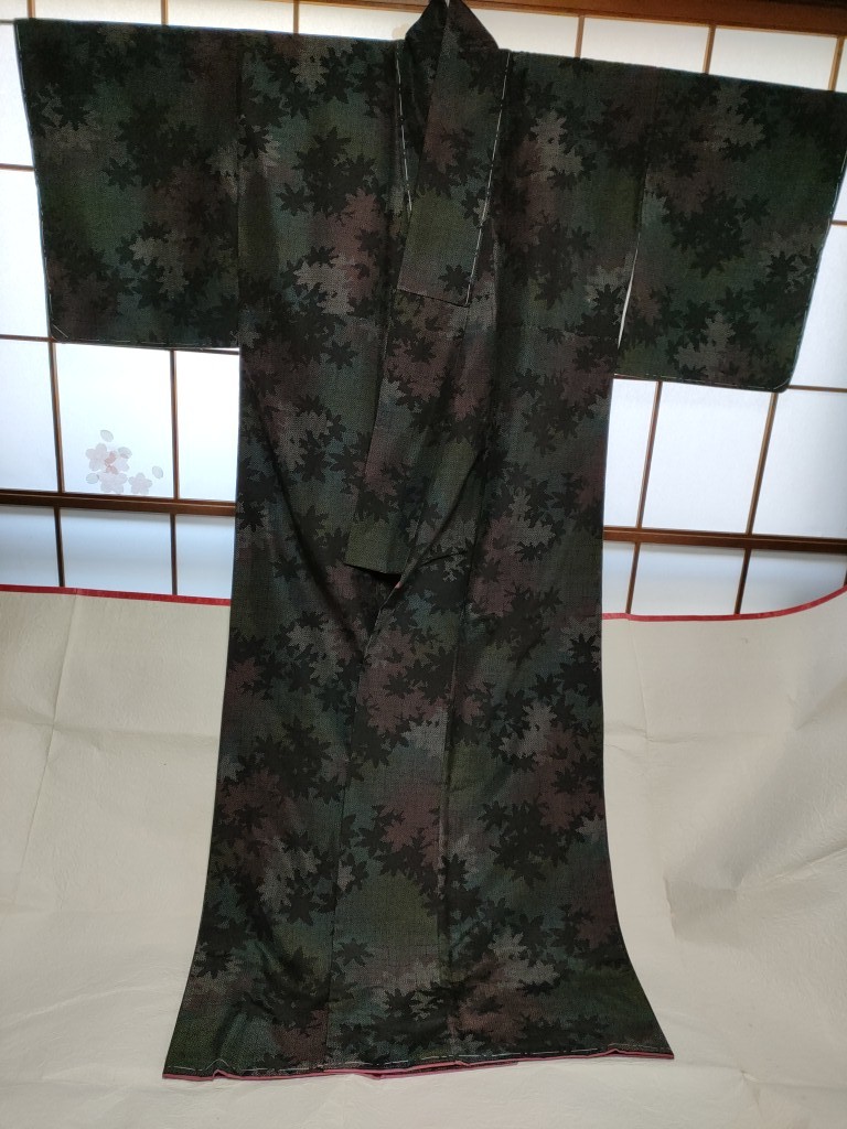 - 値下げしました 未使用経年品 シックな紬の着物 しつけ糸付き