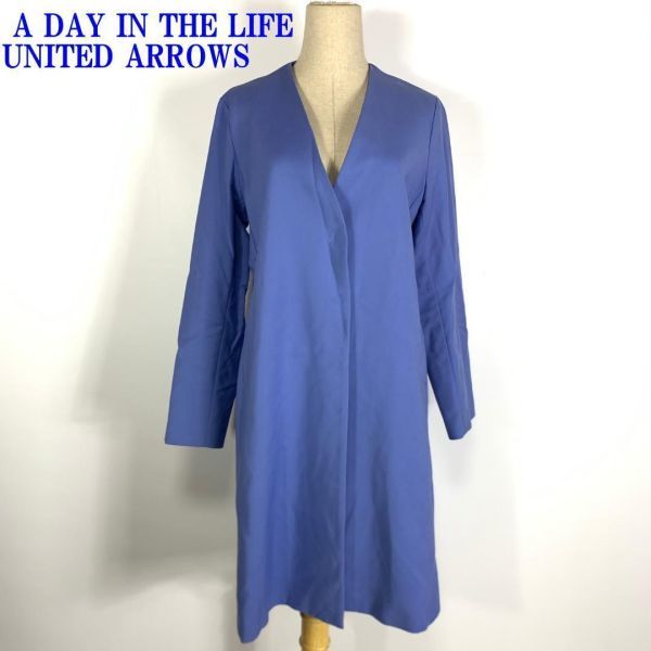 > ユナイテッドアローズカジュアルロングコートノーカラージャケット ブルーA DAY IN THE LIFE UNITED ARROWS ポケット有 シンプル C7705