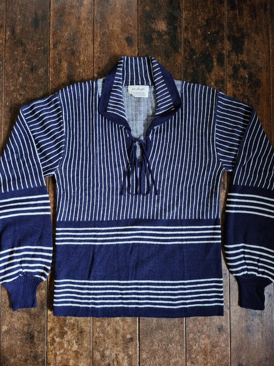- チュニック ★ ビンテージ ウール ニット セーター ストライプ ボーダー プルオーバー レースアップ ネイビー ホワイト スウェット シャツ
