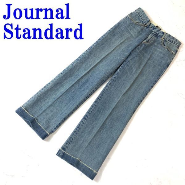 > ジャーナルスタンダード プレス入りデニムパンツウオッシュブルーJournal Standard カジュアル ロールアップ 裾ダメージ有 36 C8084