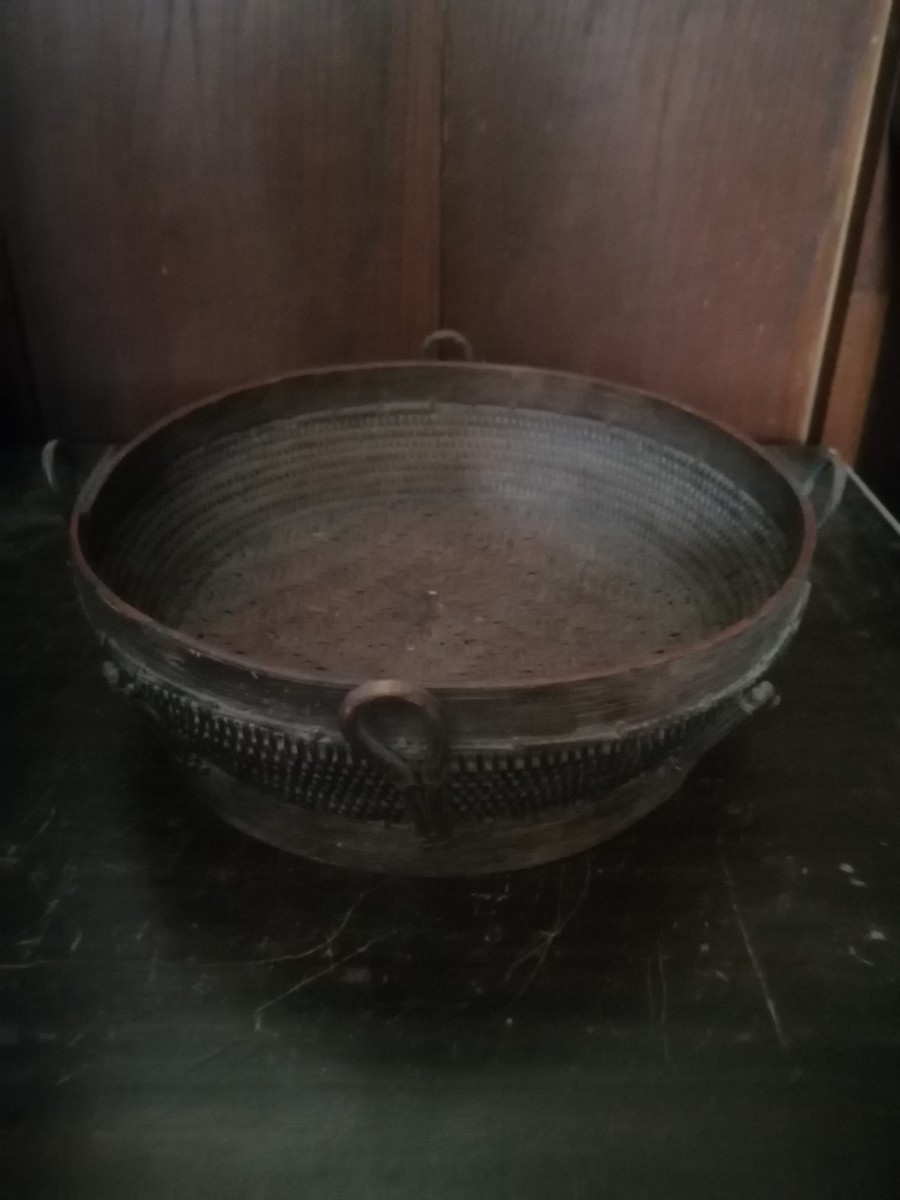 - 李朝木工 竹編み籠 李朝中期 直径26㌢ 竹工芸 かご 木工 古民具 民芸 韓国 朝鮮 李朝 高麗 M125L3
