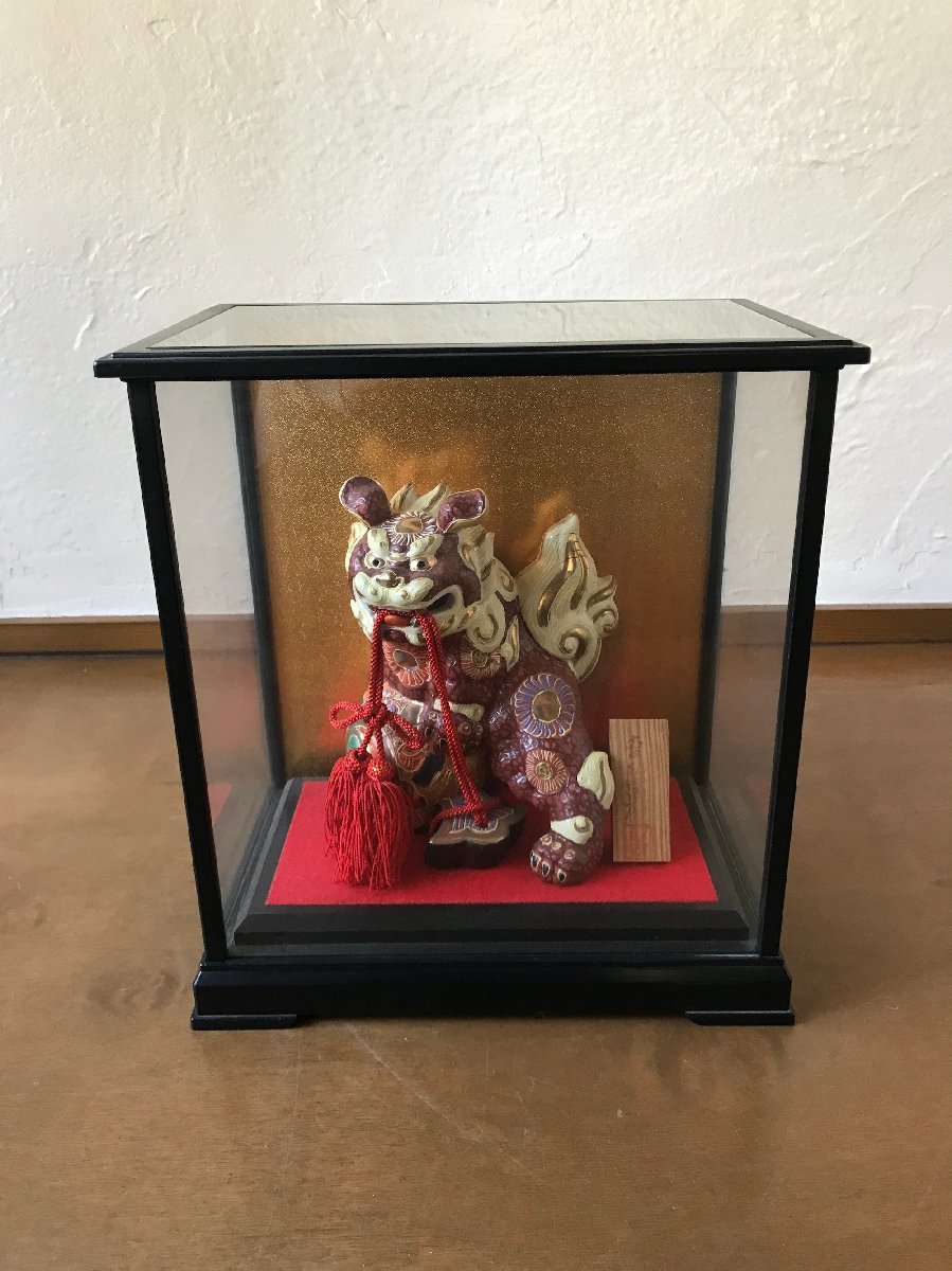 - 【中古】九谷焼 獅子 打ち出の小槌 シーサー 置物 高さ約20cm オブジェ インテリア 雑貨