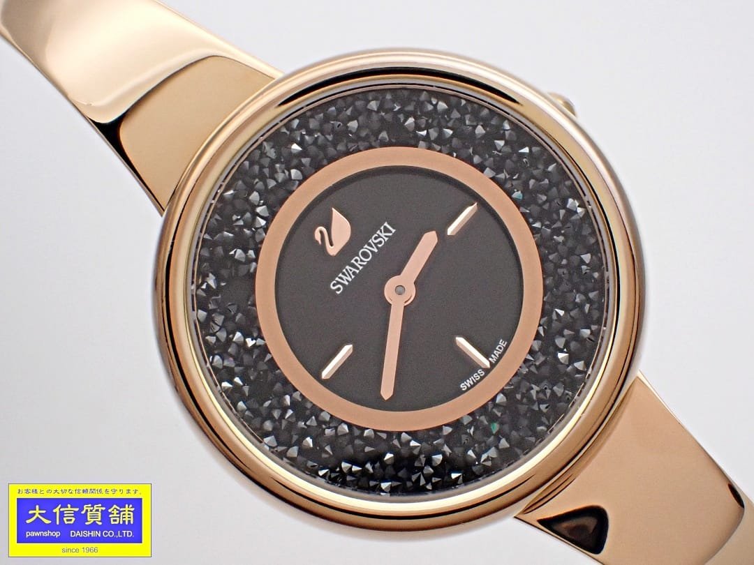 - SWAROVSKI スワロフスキー レディースウォッチ 5275043 ブラッククリスタル GP ローズゴールド クォーツ 中古A 【送料無料】 B-2186
