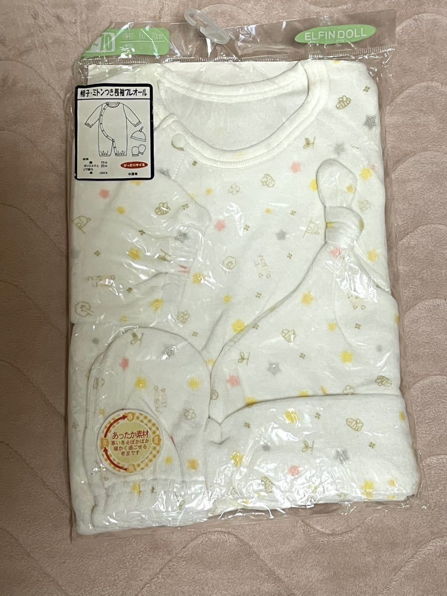 > プレオール ミトン 帽子 60〜70㎝ ホワイト 星 手袋 3点セット 肌着 女の子 あったか素材