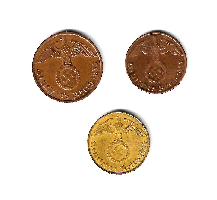- ドイツ第三帝国 (鉤十字) - 1, 2, 5 ライヒスペニヒ/青銅貨 黄銅貨★ZD-27