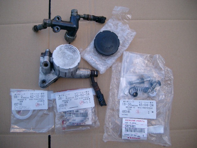 - 当時物カワサキZ1/Z2純正フロントマスターシリンダー3way&純正新品マスターシリンダーリペアキット&未使用キャップオイルカップその他