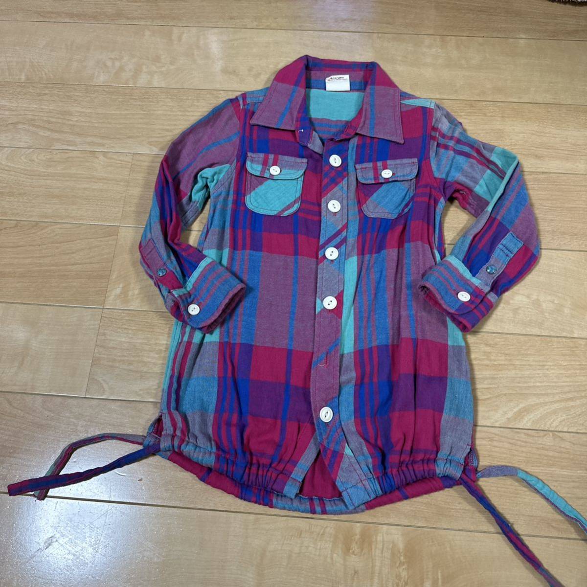 > 1回着用JUNKSTOREジャンクストアー チェック柄長袖シャツワンピース100
