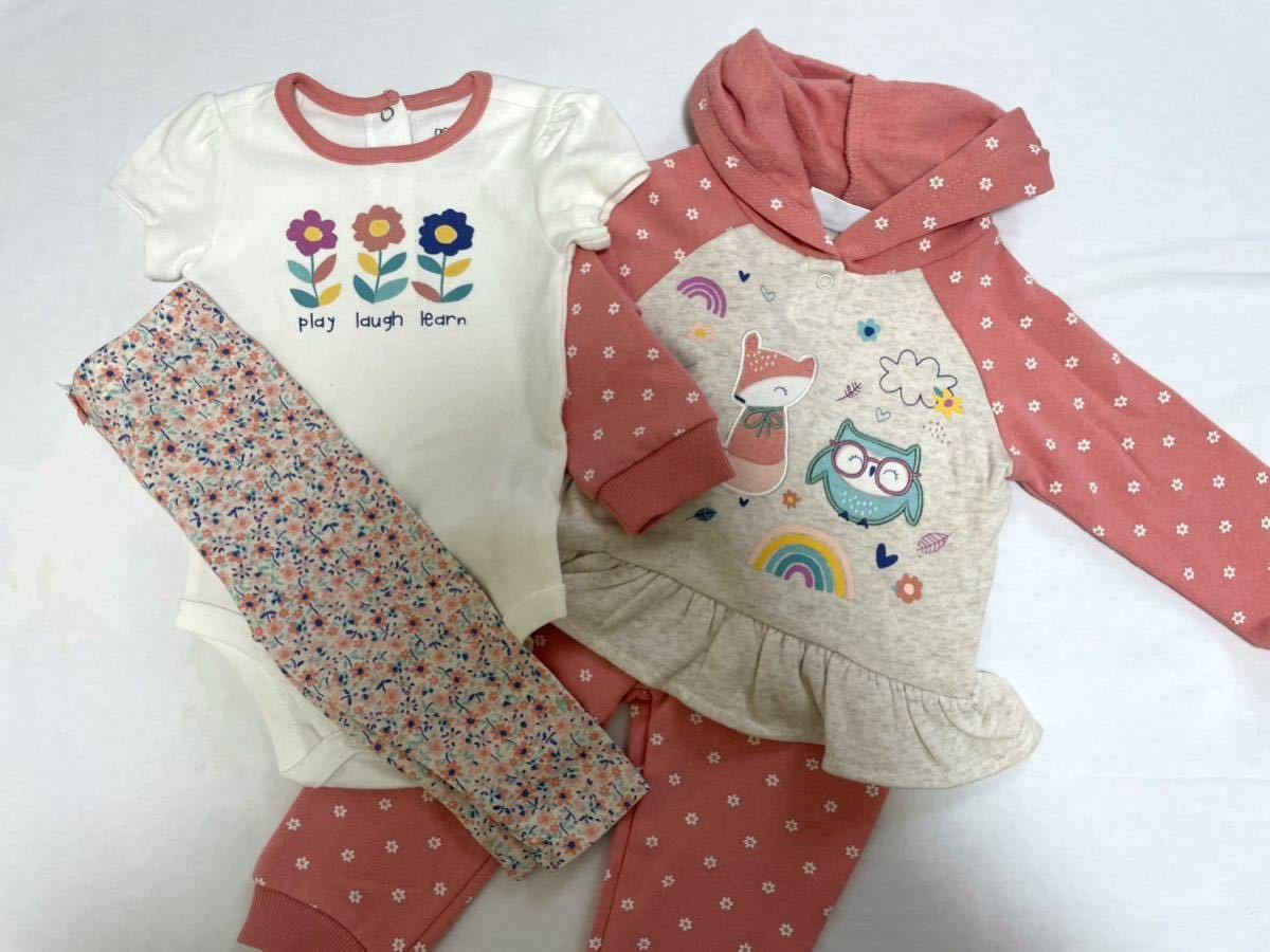 > 未使用■Kids 女の子 パーカー パンツ セットアップ 4点セット 18M / 1歳半 ピンク お花 ふくろう ♪ まとめてお得