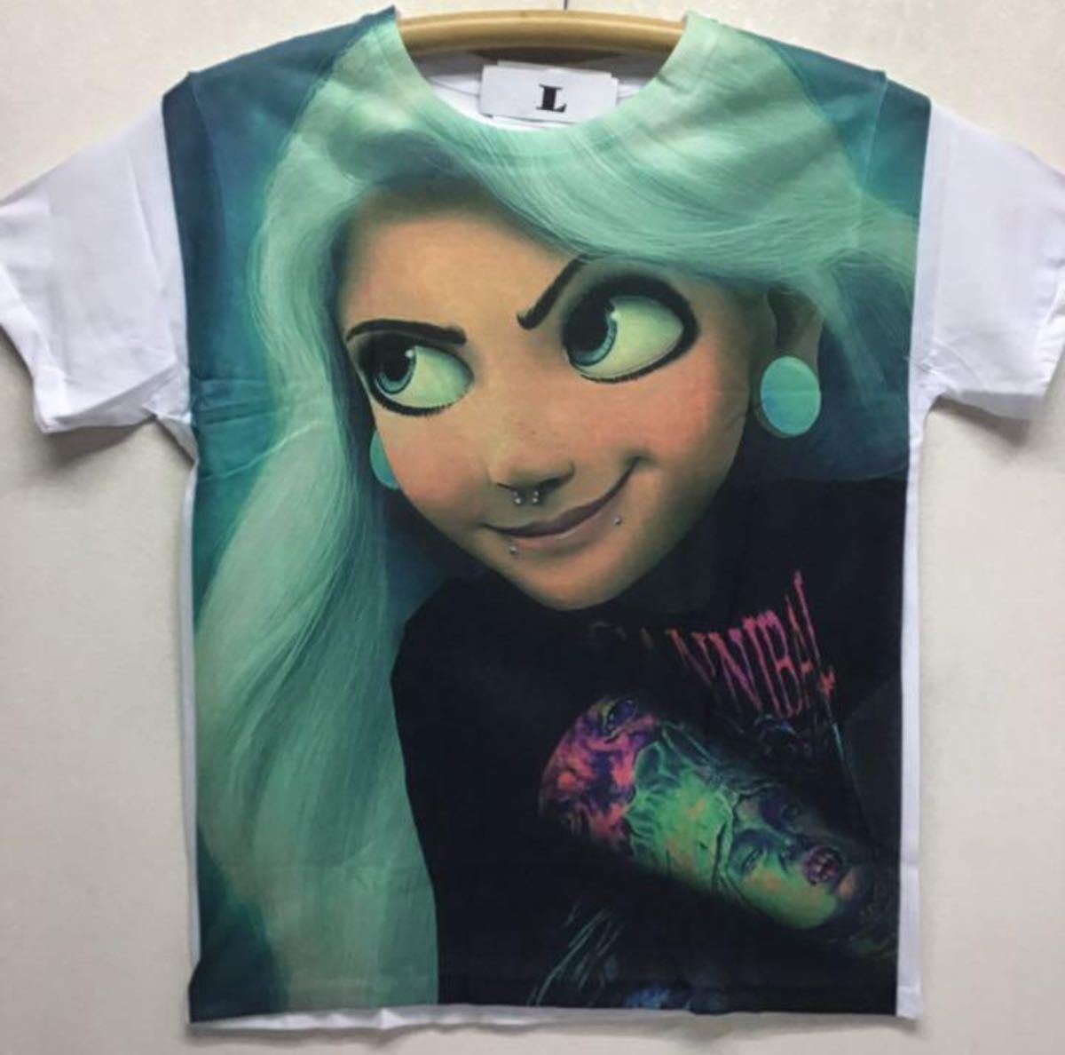 - 新品 アナと雪の女王 パロディ 鼻 ピアス パンク アナ Tシャツ Lサイズ