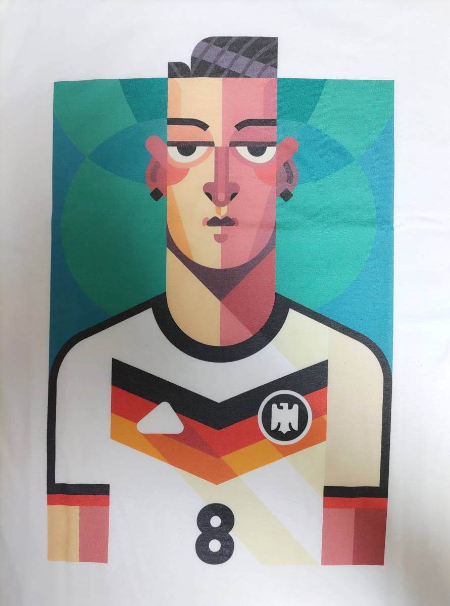 > 米国製 直輸入品 デフォルメ RE-TAKE『2014 WC ドイツ代表 メスト・エジル Tシャツ』丸首 半袖 白 前プリント XL・身幅約61cm※未使用品
