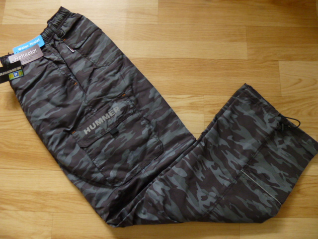 - ★HUMMER 裏フリース 黒 迷彩 カーゴパンツ★防寒ズボン★5L/カーゴズボン