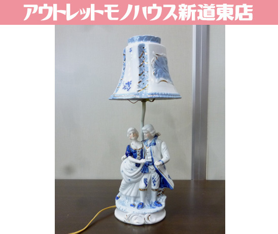 陶器 テーブルランプ 高さ45cm 青系 洋風 照明器具 ライト 卓上照明 ランプ 照明