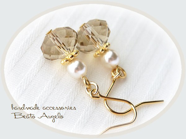 - ◆◆+angelo+ボタンカットビーズとパールのピアス(p-033)ライトゴールド G ベージュ 香水瓶